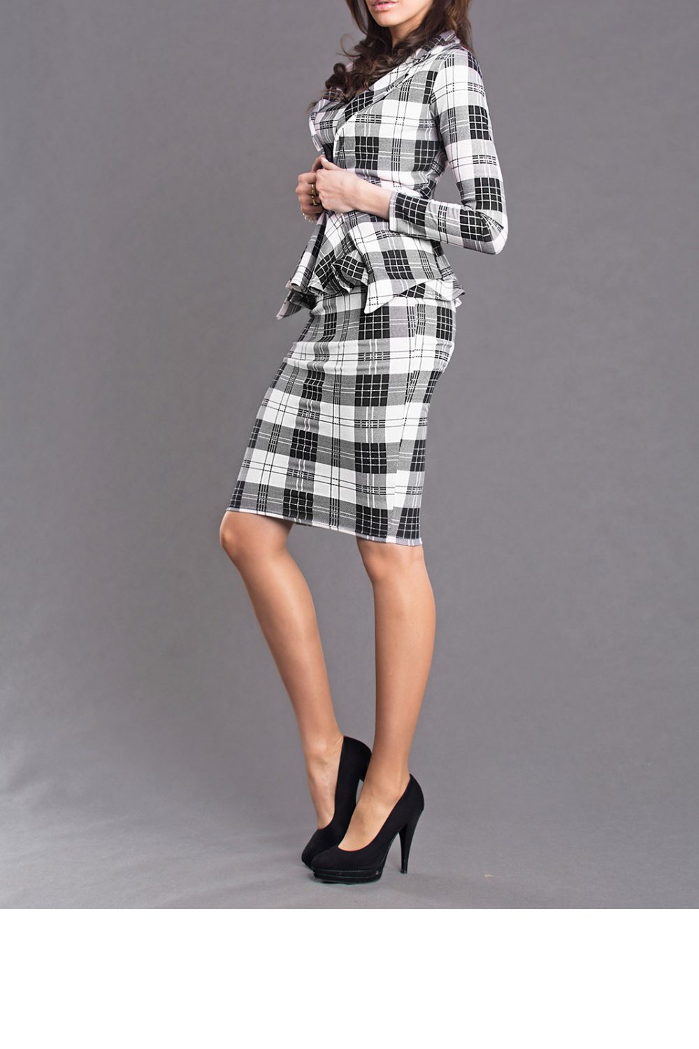Women’s unbuttoned jacket with a tailored cut in white and black check. Perfect for creating many interesting stylizations.