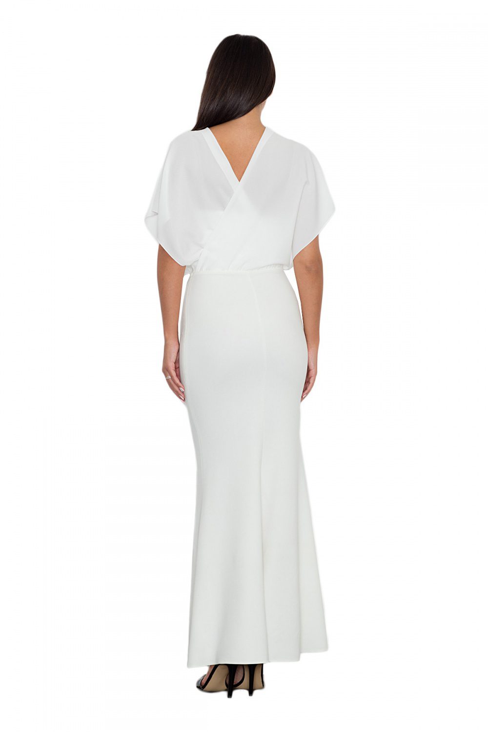 Elegant long dress fitted to the figure beautifully emphasizes and shapes the silhouette. Unusual character is given by a top sewn in delicately transparent material. Model for women who like to look fashionable and stylish.