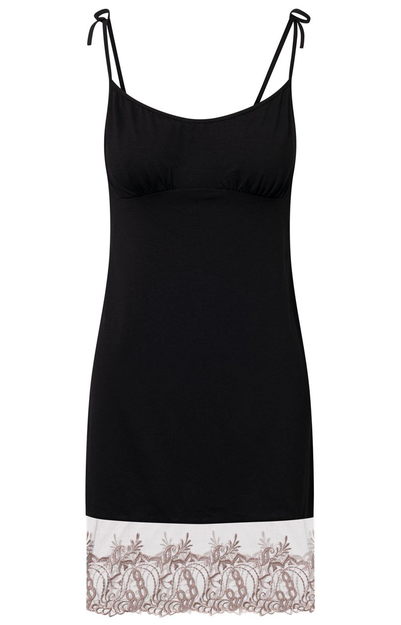 Nightgown on thin tied straps by Sensuella in black. Loose, comfortable cut at the bottom finished with impressive lace. Cups without padding. Polish product of high quality. For the set we recommend a short robe with 3/4 sleeves Sensuella, which will complete the whole.