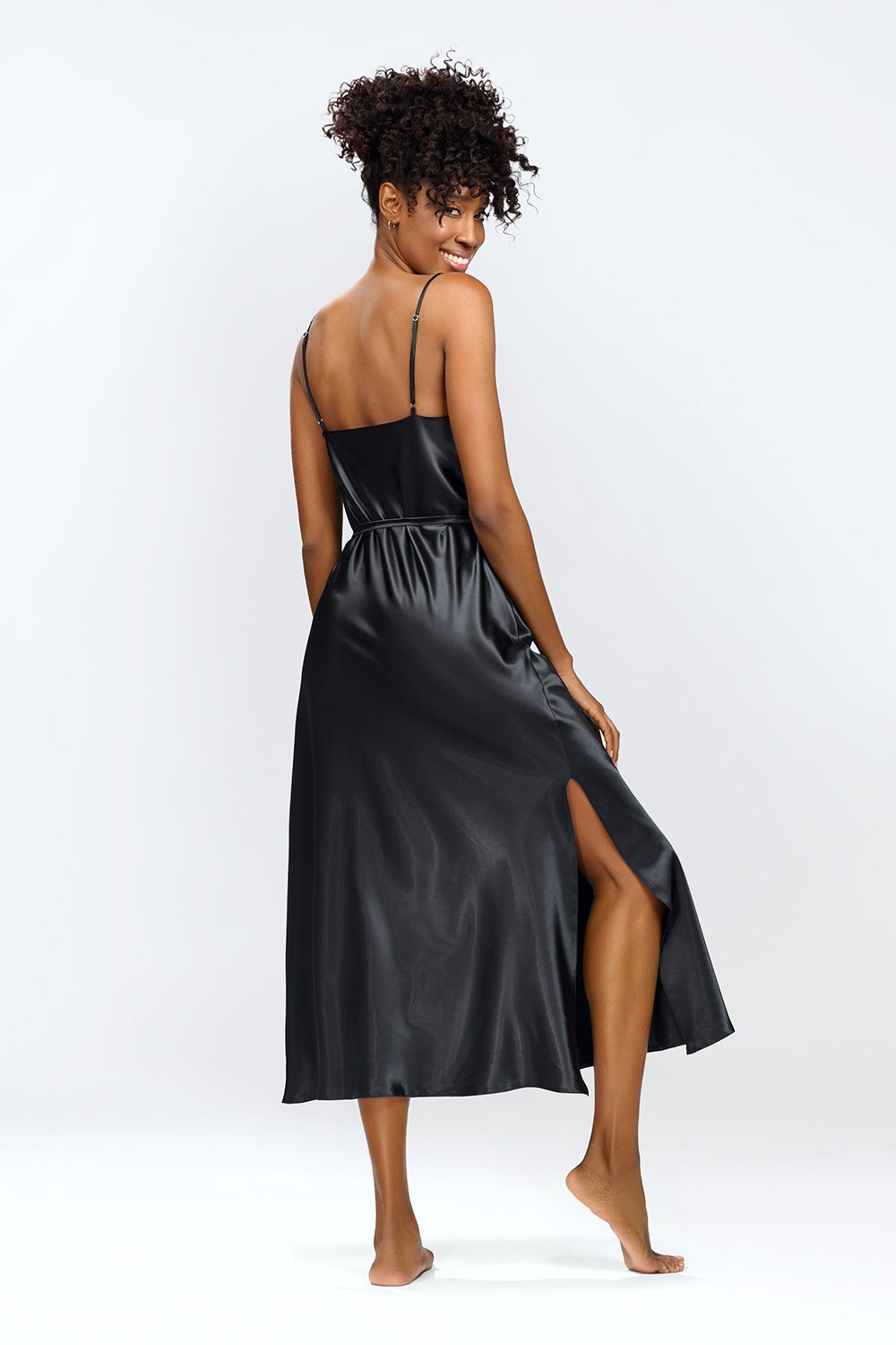 Ife slip is a satin slip with a long cut. A delicate satin belt allows to adjust the cut to our shapes. Lace trim gives it sexiness and sensuality. Ife petticoat has cut-outs on the sides, which makes it comfortable and convenient. It is a classic proposal of a nightgown. Its versatile and toned down cut is often chosen as a gift.