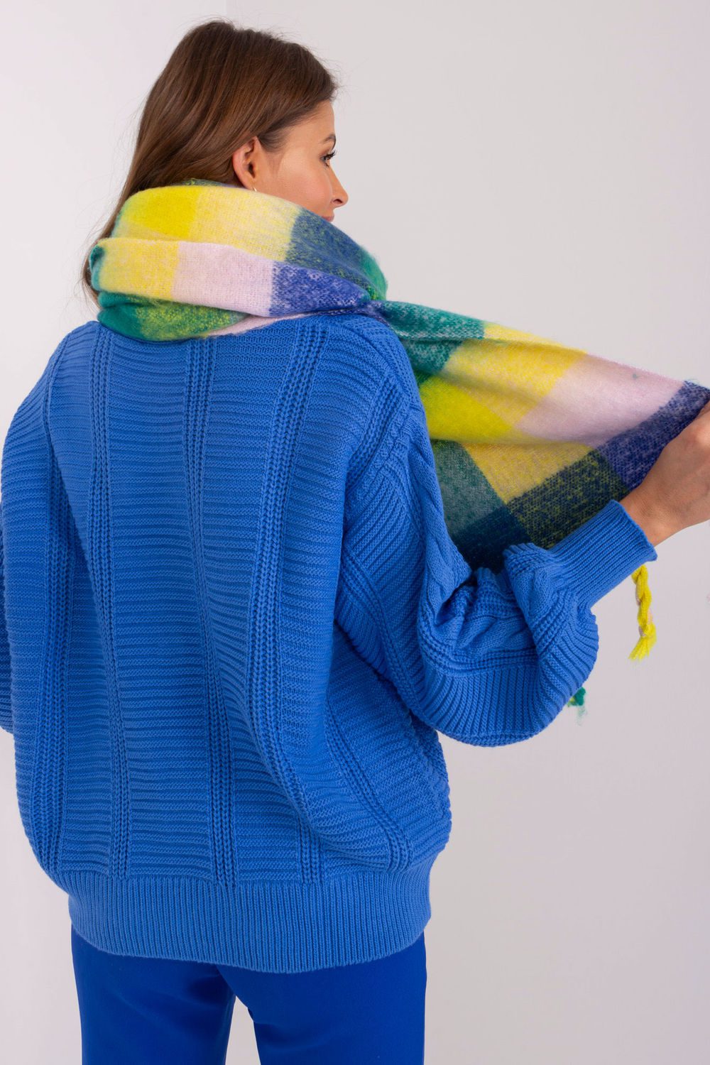 This long colorful plaid scarf is the perfect addition to your fall and winter closet. Made of durable polyester, it is not only practical, but also stylish. The tassels add subtlety and lightness to it. The length of the scarf allows for a variety of ways to wear it, you can wrap it around your neck, leave it loose on your shoulders or use it as an extra layer on colder days. No matter how you wear it, this scarf will be a stylish addition to your closet, adding character and warmth.