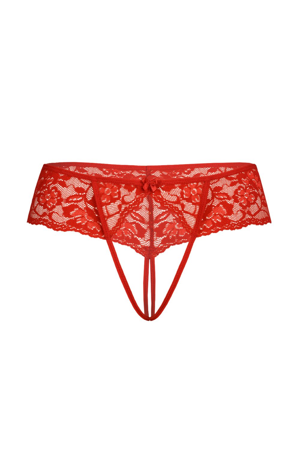 These beautiful deep red thongs will be a perfect addition to your lingerie collection. Made of high-quality material, they provide not only comfort, but also elegance. The lace with a floral motif adds subtlety and romantic charm to these thongs. Their precise finish makes them look incredibly sensual and feminine. The open crotch is a practical detail that adds a bit of spiciness and stimulates the imagination. Thanks to this product, you can enjoy full freedom and intimacy without sacrificing a refined look. An additional charm of these thongs is a delicate bow placed in a strategic location. This detail attracts attention and emphasizes your femininity. Let these thongs become your secret lingerie assortment that will add confidence and make you feel truly special. Enjoy the exceptional quality, precision of execution, and beauty of this model.