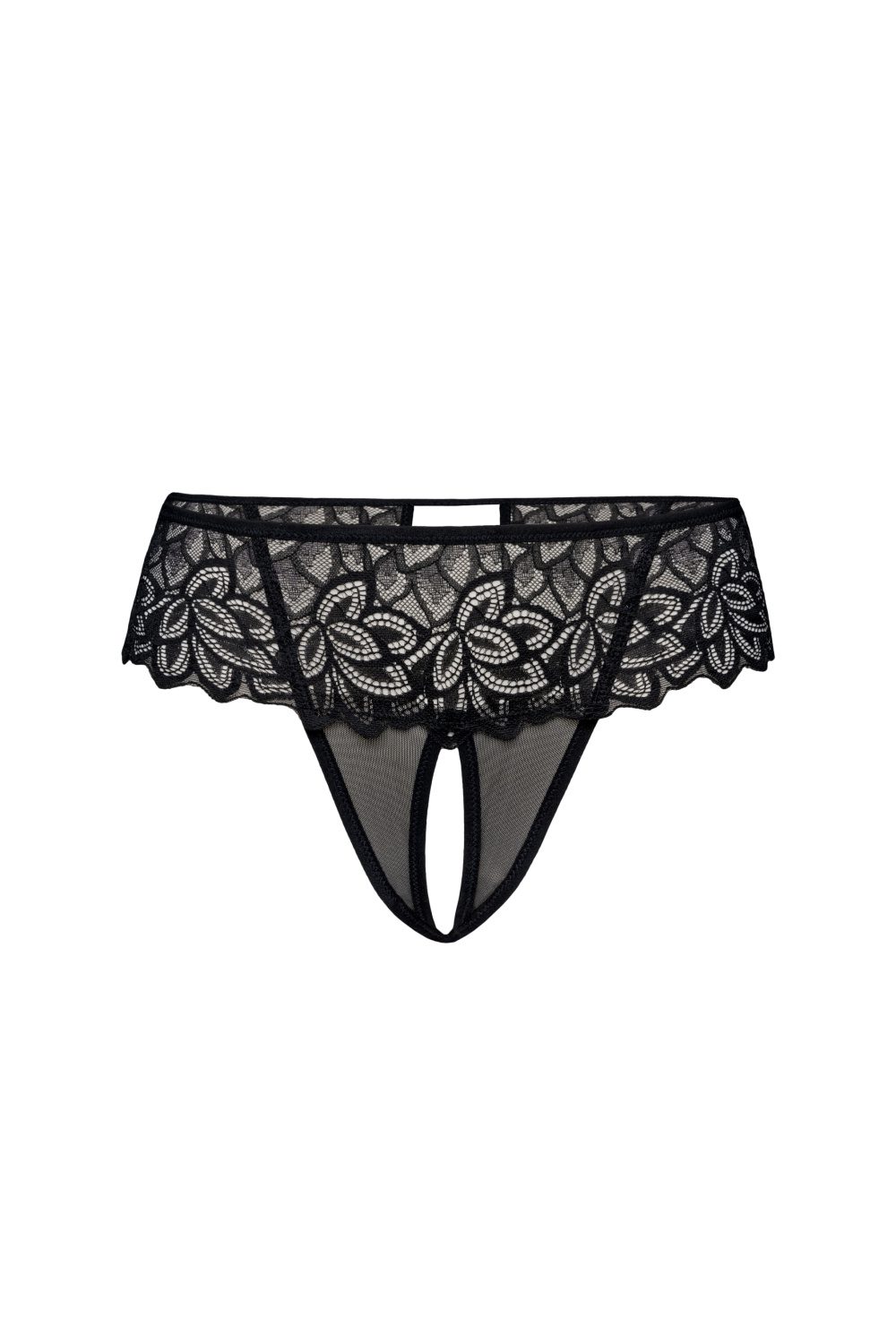 We present to you our exclusive women’s thongs, which are both seductive and extremely comfortable. Designed for confident women who want to feel sexy and feminine. These extraordinary black thongs will provide you with unforgettable experiences. Their designer look and meticulous workmanship will surely catch the eye. The hips are surrounded by a wide lace, whose subtle floral motif adds a unique charm to them. The innovative solution lies in the lower part, in the crotch area. They are made of delicate mesh that subtly shines through, emphasizing your feminine sensuality. Additionally, the product has an open crotch, which is an extremely spicy and seductive detail. An interesting accent is the tear-shaped cutout at the back. This gives an impressive look, while ensuring comfort. Our thongs are the perfect choice for confident women who want to feel sexy and seductive. Unique details, high quality workmanship, and subtle materials make this product the perfect combination of classic and modern.