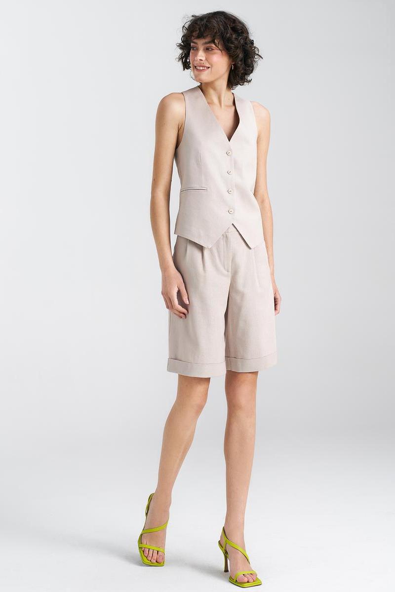 A classic-cut vest is an indispensable wardrobe item that adds elegance and style to any outfit. Made from a high-quality blend of viscose, linen, and cotton, it is not only exceptionally durable but also comfortable to wear. The button closure at the front gives it a classic character while allowing for easy and quick dressing. It also features a lining, making wearing the vest even more comfortable and visually pleasing. This vest will be a perfect addition to both formal and casual outfits, adding a touch of charm and sophistication.