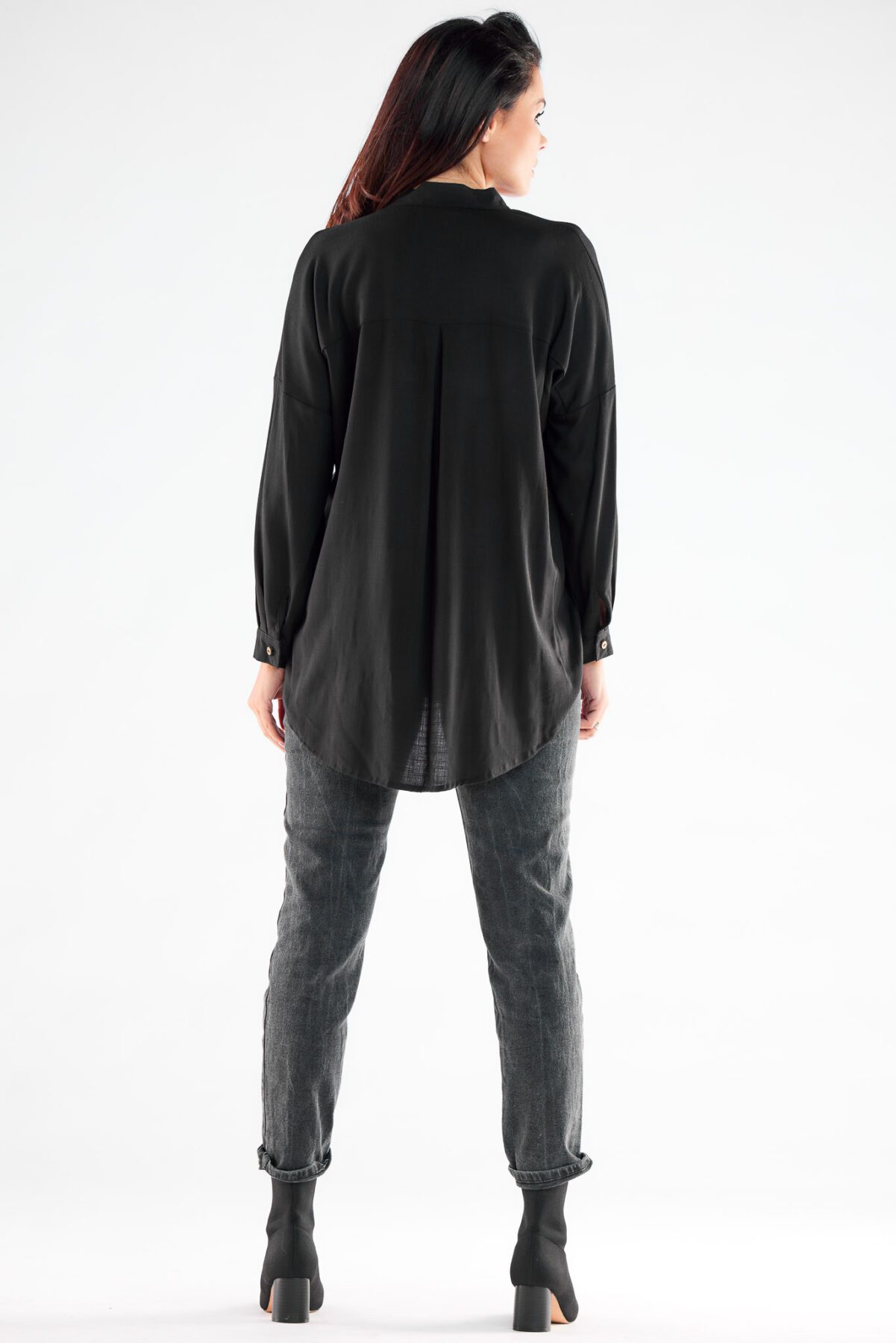 Elegant stand-up shirt with long sleeves. The shirt has an extended back and is buttoned. Perfect for a business meeting and everyday wear. Product designed and sewn in Poland.