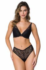 The Nerine bra is the quintessence of elegance and comfort. Made of high quality, delicate lace in a classic black color, it fits perfectly to the body, emphasizing the natural shape of the bust. This model features padded cups with subtle support that give a beautiful cleavage line, while decorative straps add a stylish touch. With adjustable straps and a convenient back clasp, the Nerine bra provides a perfect fit and comfortable all-day wear. It’s an ideal choice for both everyday and special occasions.