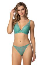 Discover the Eternal M-4028/11/1 push-up bra in a stunning shade of turquoise. This model combines elegant design, delicate lace embellishments, and perfect breast lift. Thanks to the padded cups with a push-up effect, it beautifully shapes the cleavage, emphasizing feminine curves. The push-up effect lifts and accentuates the bust, creating a tempting cleavage. The lace design adds elegance and sensuality. Adjustable straps for a perfect fit and comfortable wear. The solid clasp ensures stable support throughout the day. The perfect complement to the set beautifully complements the panties from the same collection.