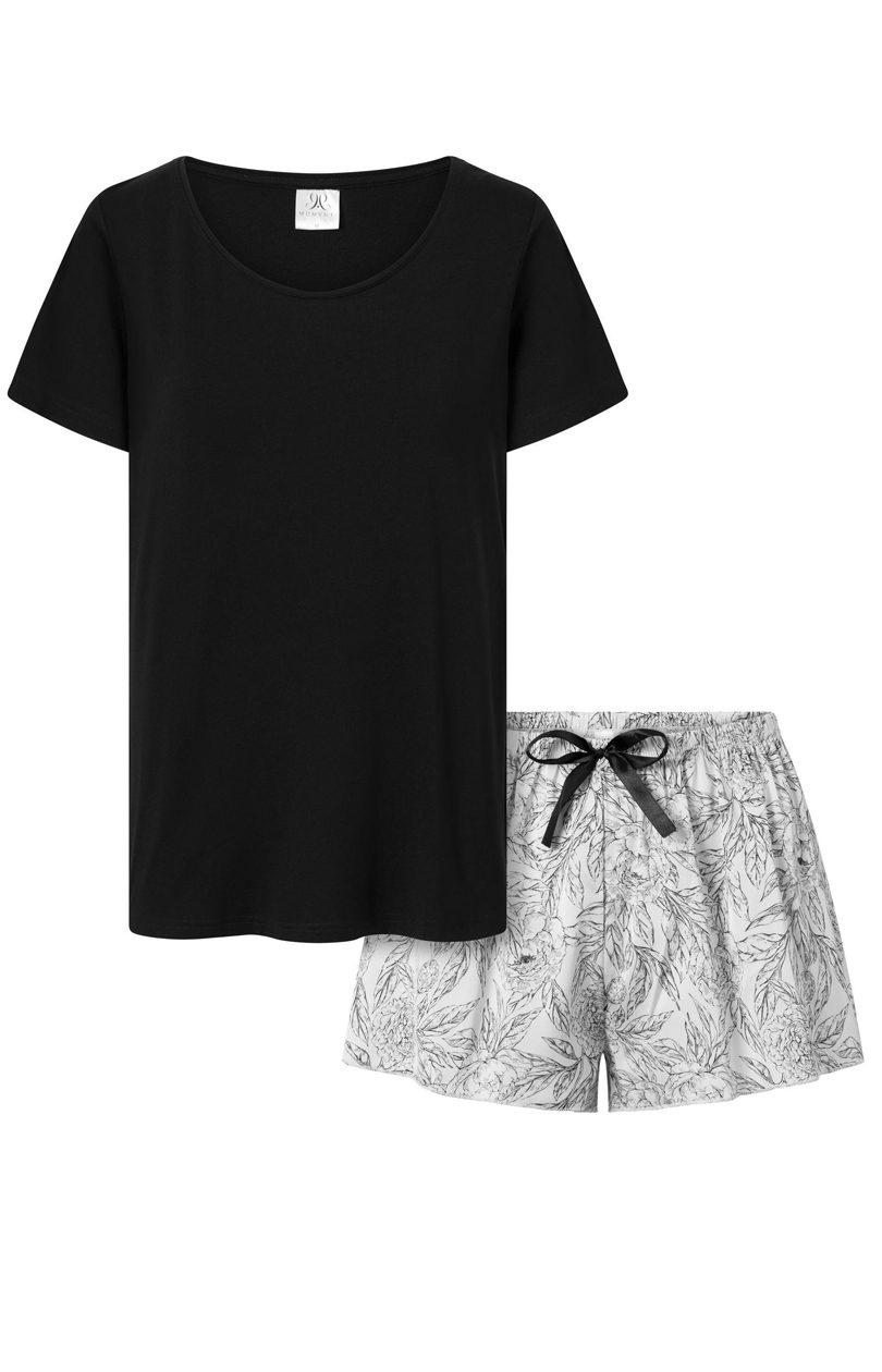 Pajamas with a short-sleeve blouse are a combination of elegance and comfort, perfect for both quiet evenings at home and as homewear. The blouse with a U neckline adds subtlety and feminine charm, while creating an elegant look. The loose, comfortable cut guarantees freedom of movement and a perfect fit. The set also includes shorts, which match perfectly with the blouse to create a complete look. The elastic waistband ensures comfortable wearing, and the shapely cut emphasizes feminine assets. The pajamas were designed with comfort and style in mind, making wearing them a real pleasure. The material of the pajamas is stretchy, which further enhances the comfort of wearing them. The high quality printing of the material guarantees durability and aesthetics, even after many washings. The product was designed and sewn in Poland, which adds to its local character and guarantees high quality workmanship. The 2-piece pajama set with a short-sleeved blouse is a proposal for women who want to combine comfort with elegant style even at home.