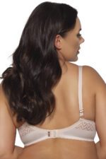 Unique semi-soft bra designed for women with fuller breasts. Deep, comfortable cups with bottom underwires provide excellent support and beautiful breast shaping. The inner part of the cups is lined with soft foam, which gently envelops the breasts, increasing wearing comfort. The model fastens at the back, with non-detachable, adjustable straps, allowing for a perfect fit to the silhouette. Subtle mesh decorations and muted colors add elegance and class to the whole. The bra is packed in an aesthetic box, making it a great gift idea. An excellent choice for everyday wear when comfort, support, and feminine style matter.