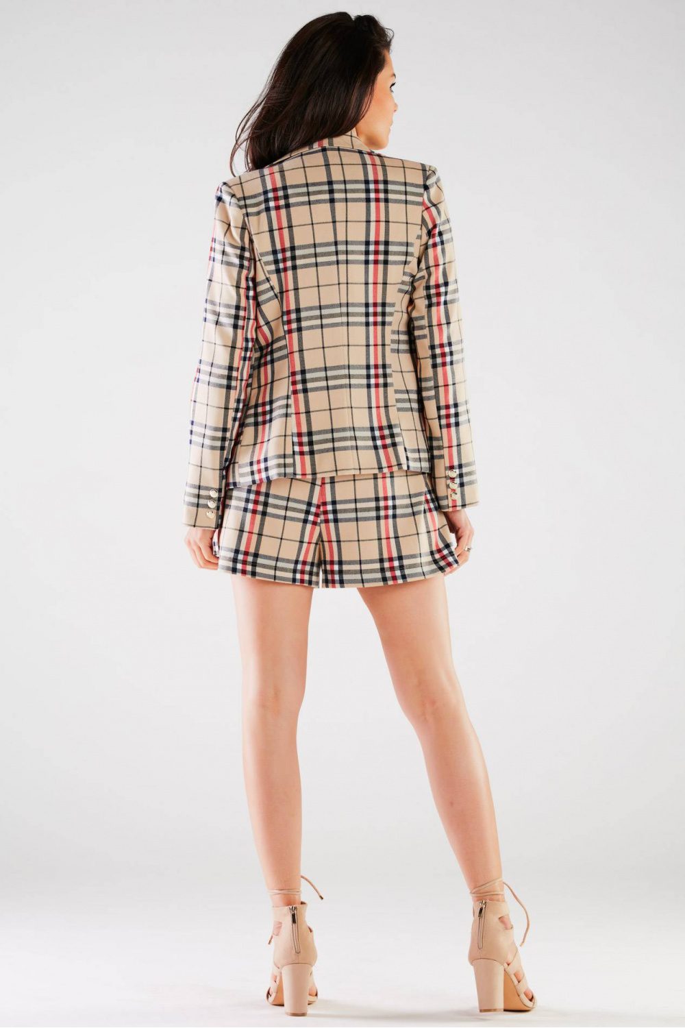 Loose-fitting high-waisted shorts with a tie at the waist, pleats at the front and pockets at the side seams. The back of the shorts has an elastic band. Look great when combined with our A439 jacket. Made and designed in Poland.